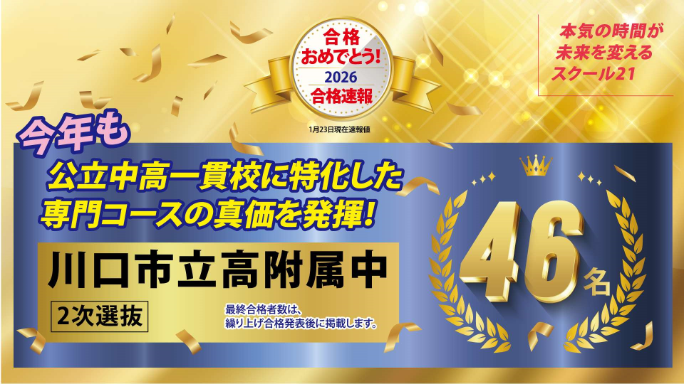- 2026年度 川口市立高附属中入試結果 スクール21から46名合格しました!