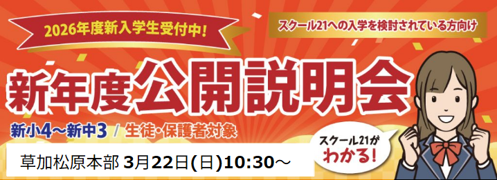 2.会 場 スクール21草加松原本部教室(※使用教室は当日ご案内いたします)